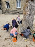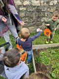 Au bout du parcours, une belle surprise sucrée les attendait : un trésor rempli de friandises, soigneusement caché dans la cour. Les yeux pétillants de joie, les enfants ont pu remplir leur petit panier d’Halloween, confectionné avec soin par Ingrid et Léa..
